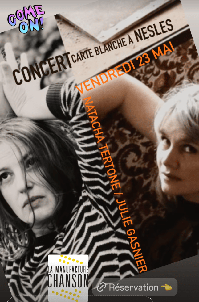 Ce vendredi 23 mai, je serai à la Manufacture Chanson à Paris, pour un plateau partagé avec la merveilleuse Julie Gasnier, à l’invitation de Nesles et pour fêter ça, j’ai une exclusivité pour vous,